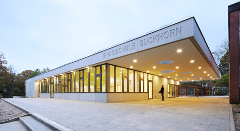 | Bauvorhaben | Neubau einer Pausenhalle der Grundschule Buckhorn als freistehender eingeschossiger Pavillon. Die Pausenhalle dient als Essenshalle und enthält neben der Schülerbücherei Flächen für die Nachmittagsbetreuung der Schüler im Zuge der Umwandlung zur offenen Ganztagsschule. |